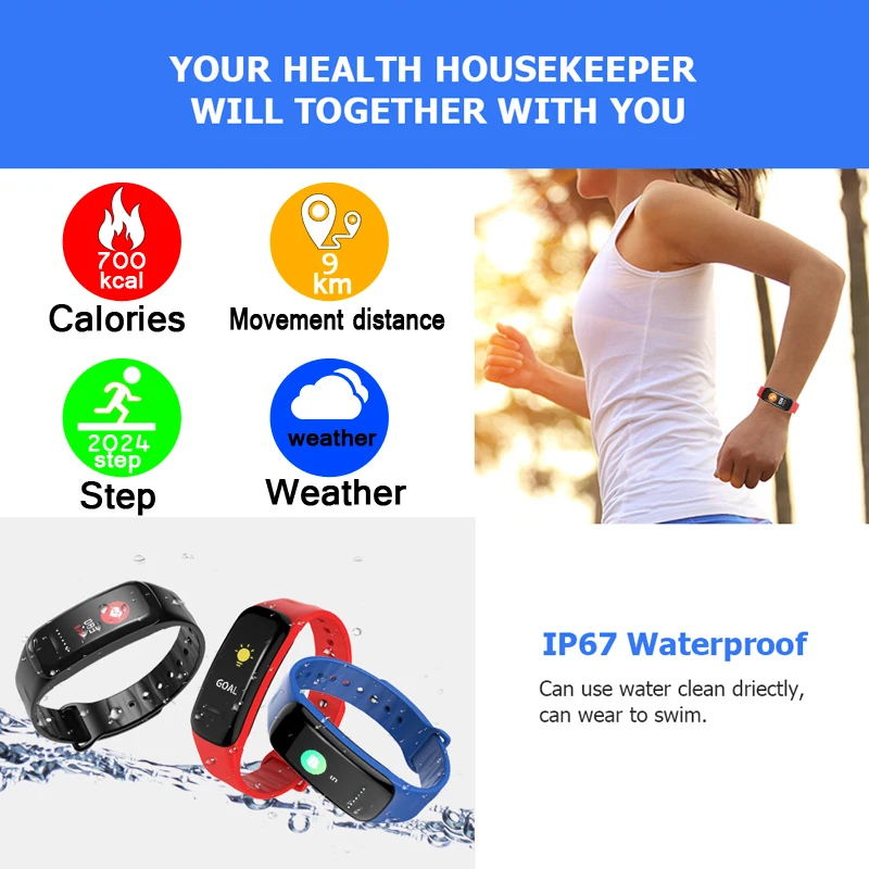 LIGE New Smart Bracelet OLED Touch Screen 0.78" Message Display Weather Forecast Fitness Tracker Smart Band smart watch Men+Box