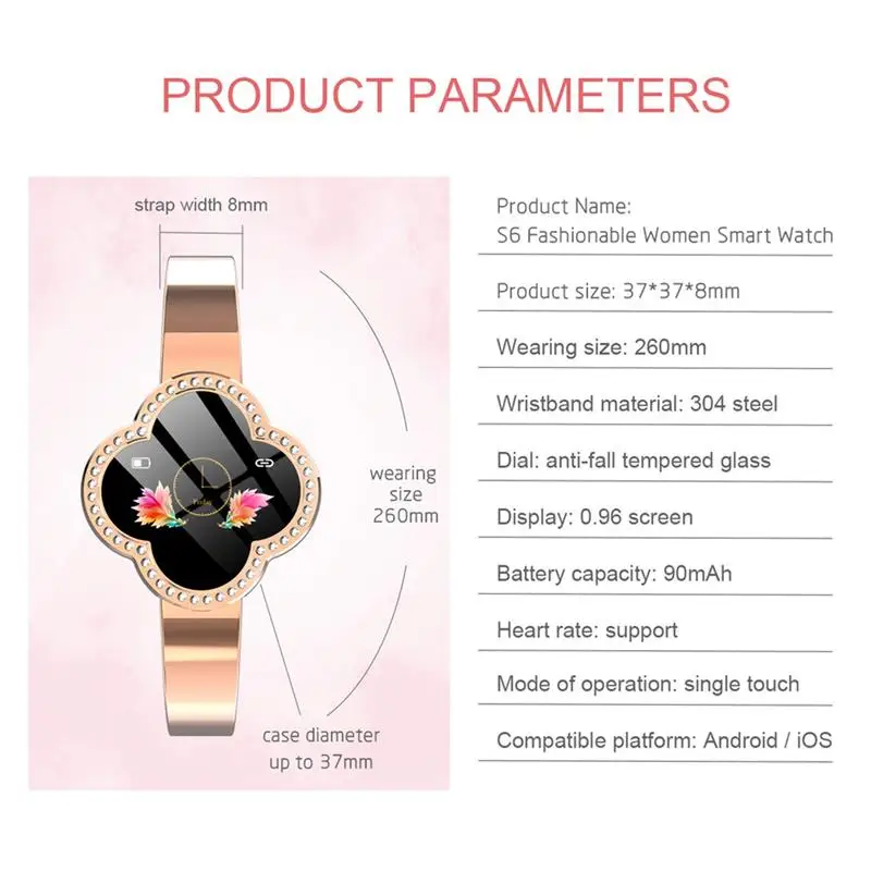 Color Screen Heart Rate Monitor 0.96 Inch Display Smart Female Bracelet Smart Female Bracelet Four-leaf Clover Dial Gift For Gir